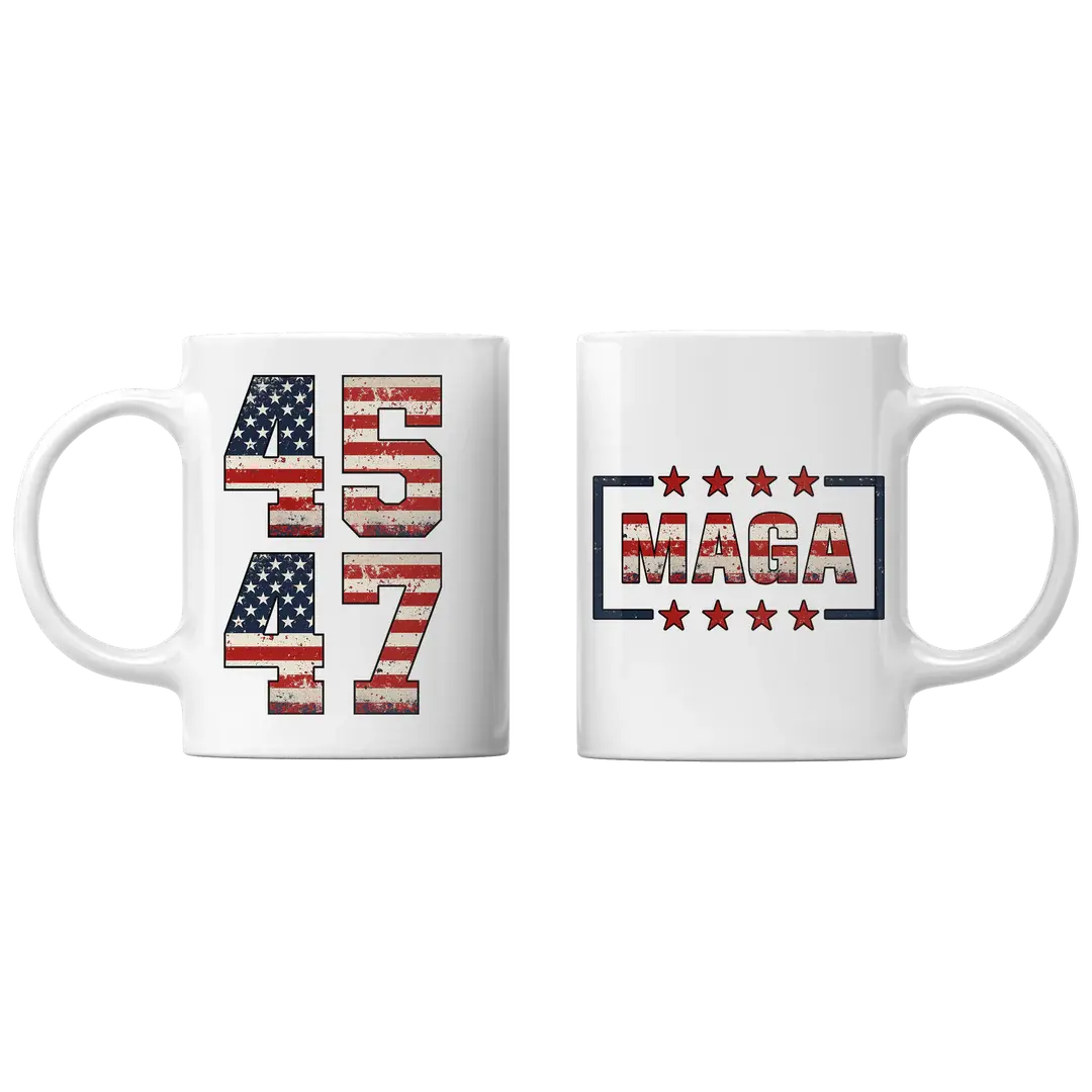 Proudly sip your morning brew while honoring one of the most iconic figures in modern American history. The MAGA 45 47 Coffee Mug pays tribute to Donald J. Trump, the 45th and 47th President of the United States, and is the perfect way for any patriot to show where they stand.